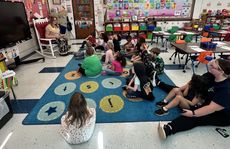 Caption Jasmine Thompson reads "Farm Boots" for a classroom during Ag Week 2026.